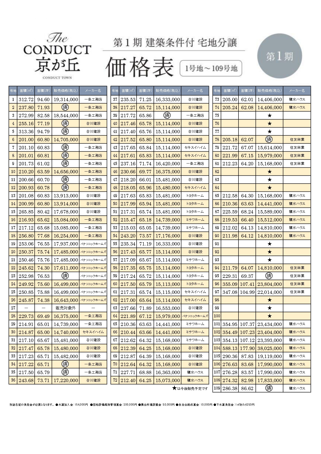 154,000円●団地設備維持管理基金/300,000円●集会所建設基金/50,000円●自治会結成基金/10,000円●下水道負担金/1㎡あたり350円●事業主・土地売主/コンダクト株式会社 北九州市小倉北区浅野