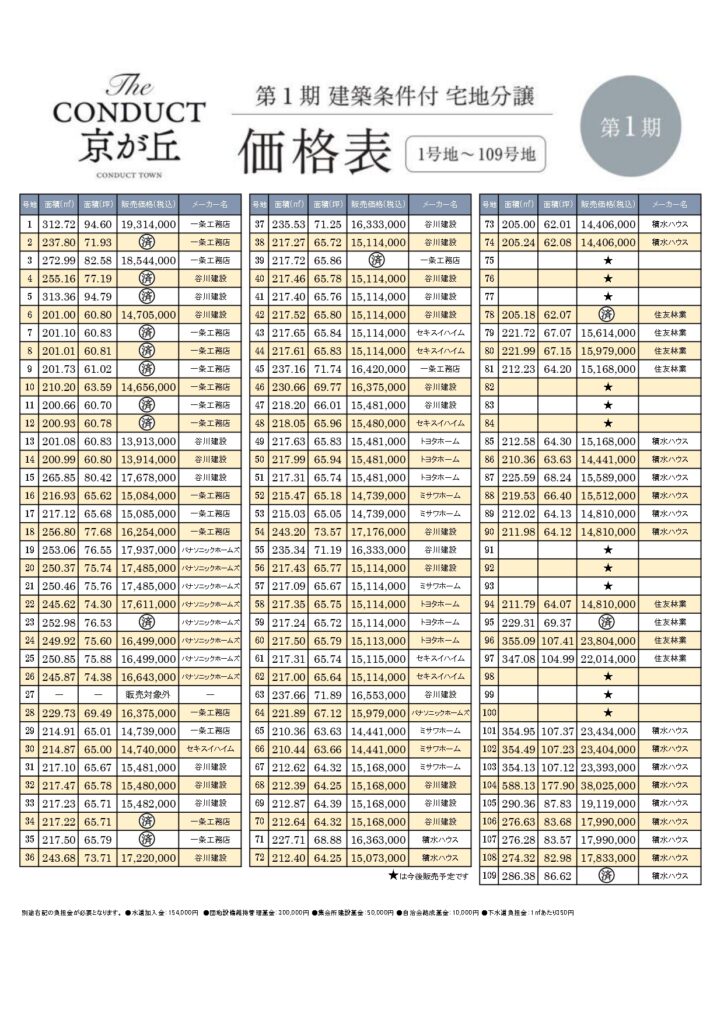 建築条件付宅地分譲/土地売買契約後ただちに建築協議をしていただき、3ヶ月以内に上記ハウスメーカーと建築請負契約を結ぶことを条件に販売いたします。この期間内に建築しないことが確定したときには、土地売